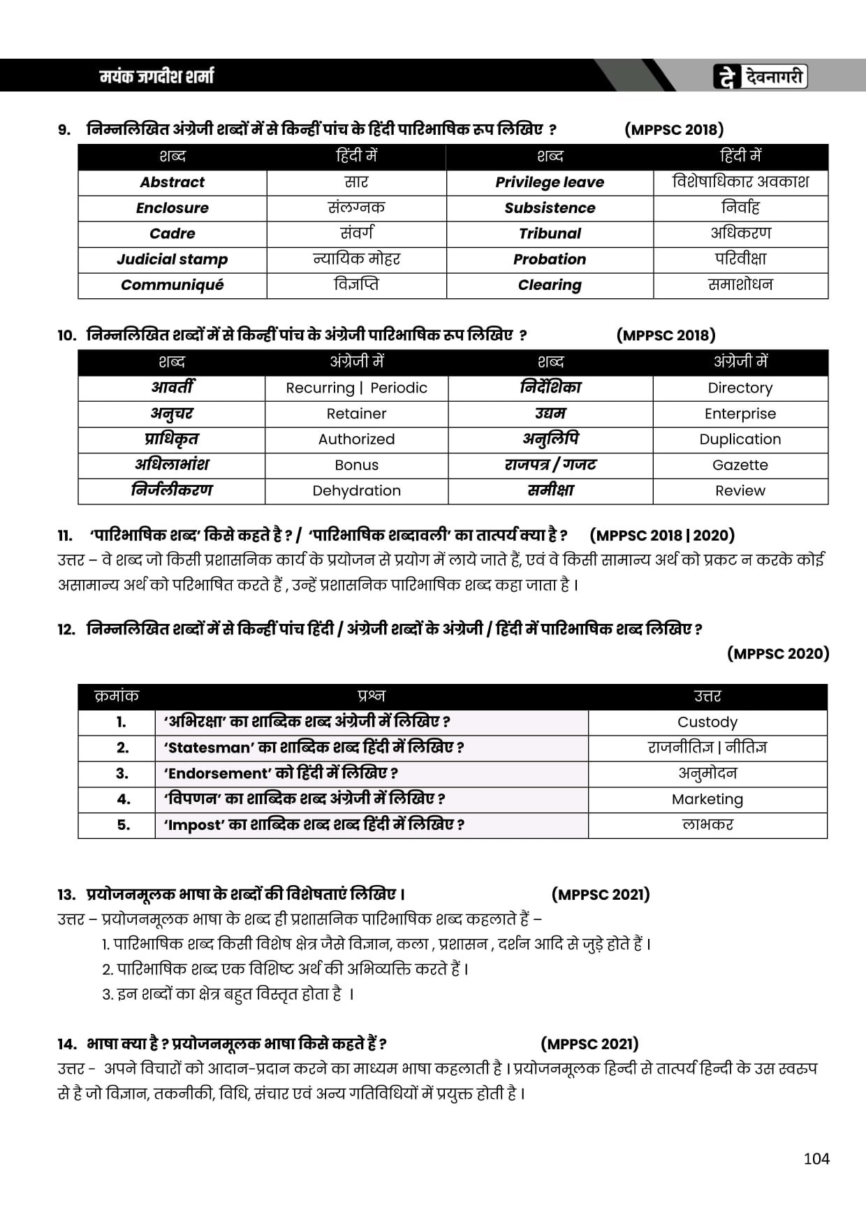 SECOND EDITION SAMANYA HINDIN AND VYKRAN MADHYA PRADESH LOK SEVA MAYOUS RE NAVN BY. MAYANK JAGDISH SHARMA PUBLICATION: DEVNGGRATI PUBLICATION, INDORE